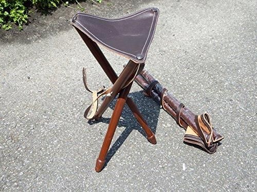 アンティーク野外チェアー、牛革、木製の折り畳み式 デットストック